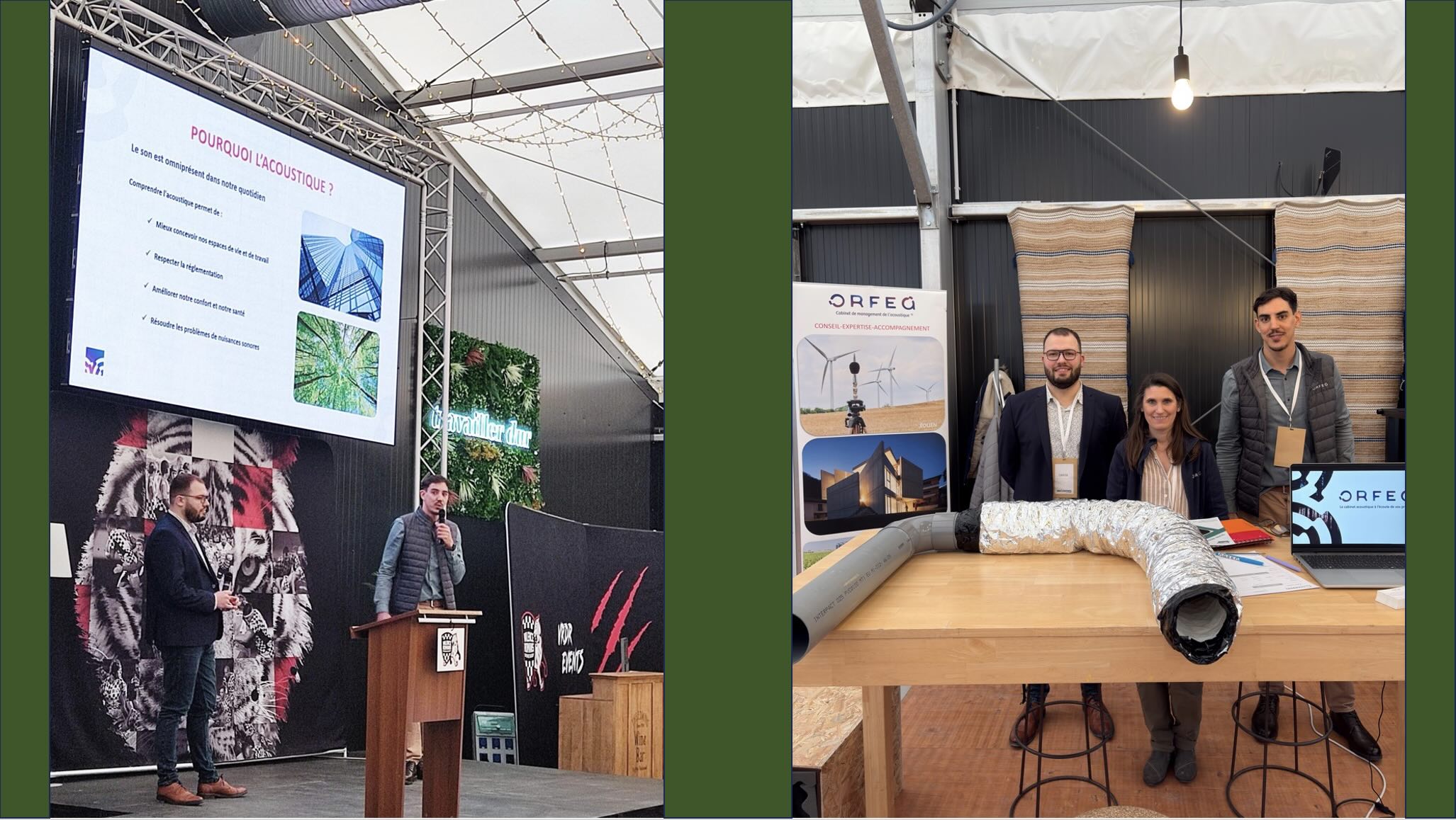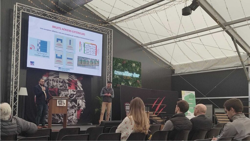 À cette occasion, nos acousticiens Nadège BASTIDE, Gabriel AUTISSIER et Wael LARAFI ont animé 𝟮 𝗰𝗼𝗻𝗳𝗲́𝗿𝗲𝗻𝗰𝗲𝘀 𝗱𝗲́𝗱𝗶𝗲́𝗲𝘀 𝗮𝘂𝘅 𝗲𝗻𝗷𝗲𝘂𝘅 𝗮𝗰𝗼𝘂𝘀𝘁𝗶𝗾𝘂𝗲𝘀 dans le bâtiment : un sujet au cœur des préoccupations actuelles. Ces moments de partage ont été riches, stimulants et portés par des échanges de grande qualité.